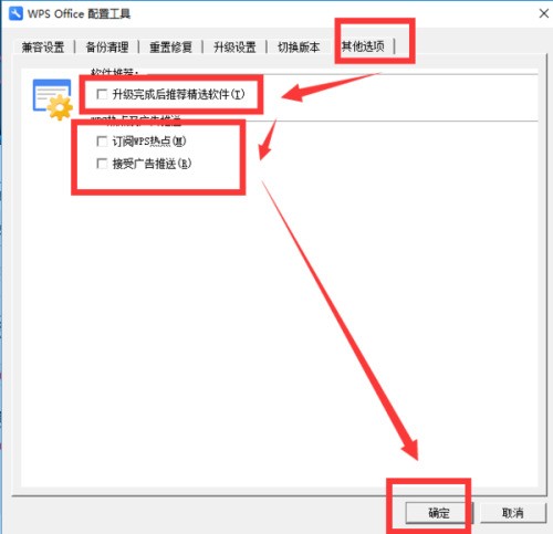 方法二:點開始菜單→配置工具→高級→其他選項,把WPS熱點公告推送這些勾全去掉就行,徹底清凈!親測有效,趕緊試試~