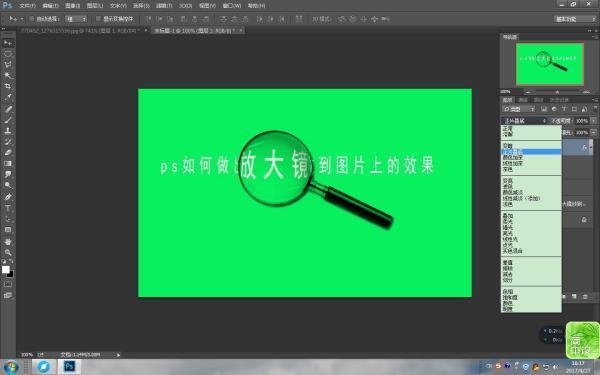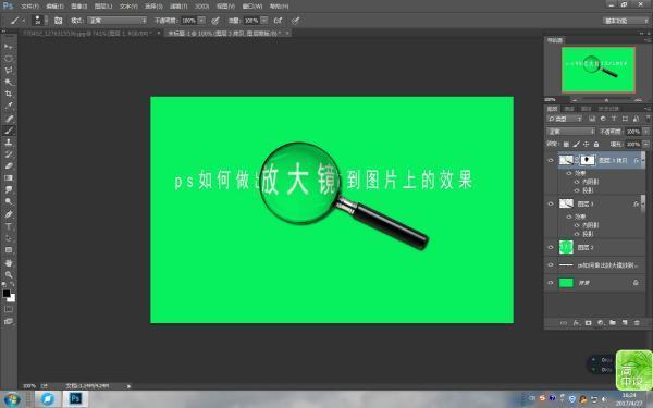9、復制圖層,改“圖層模式”為“正常”,關吧況漸立閉“效果”,新建“圖層蒙版”,用黑色畫筆工具將放大鏡涂抹出來,完成。