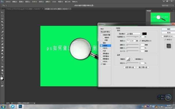 7、雙擊調出“圖層樣式”,添加“內發光”、“投影”等效果;