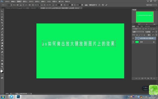 3、用“文字工具”打上一段文字,ctrl+t調整大小位置,柵格化文字;