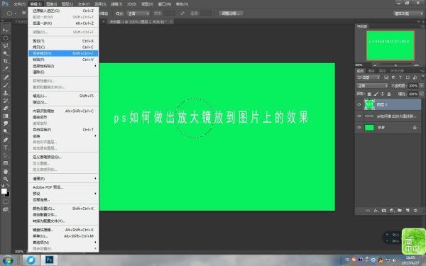 4、打開“橢圓形選框工具”在文字上繪制一個正圓選區,“編輯--合并拷貝--粘貼”,ctrl+t適當放大;