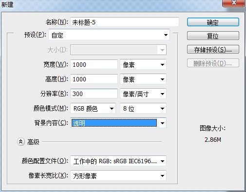 然后再新建一個1000像素X1000像素,300dpi 儲存