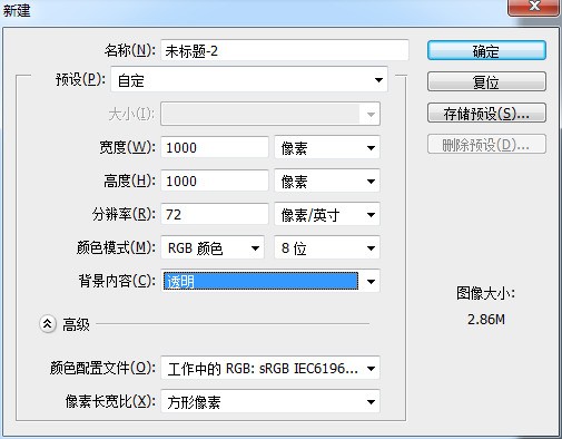 比如現在新建了一個畫布,1000像素X1000像素,72dpi 儲存