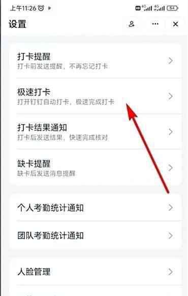 在快捷打卡配置頁面中,點擊“快捷打卡方式”選項,系統(tǒng)將彈出選擇窗口。在窗口底部找到“極速打卡”模式,點擊選定后,再次點擊頁面底部的“確定”按鈕,完成設(shè)置。