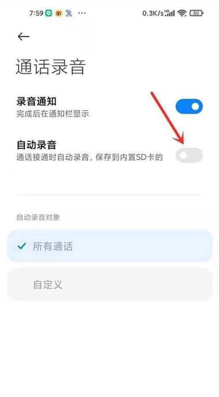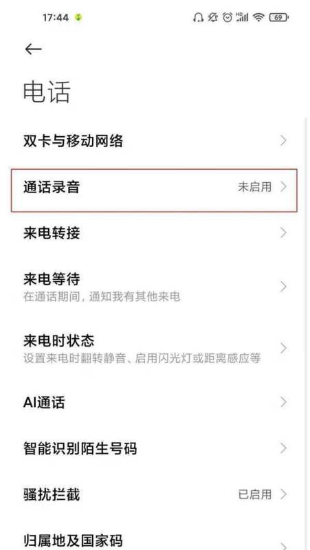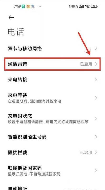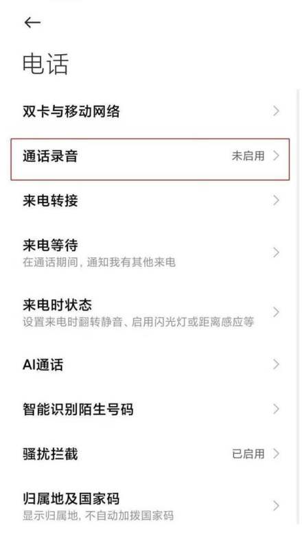 進入通話錄音選項:在設置列表中找到并點擊【通話錄音】。