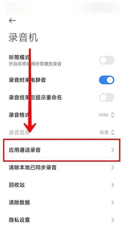選擇應用通話錄音選項:在錄音機設置頁面中,找到并點擊【應用通話錄音】選項。