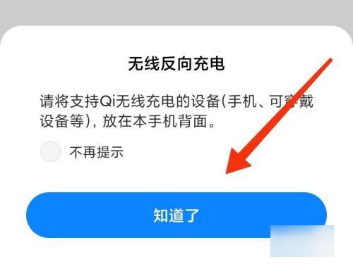 5、點(diǎn)擊最下角的知道了,開(kāi)啟無(wú)線充電功能。