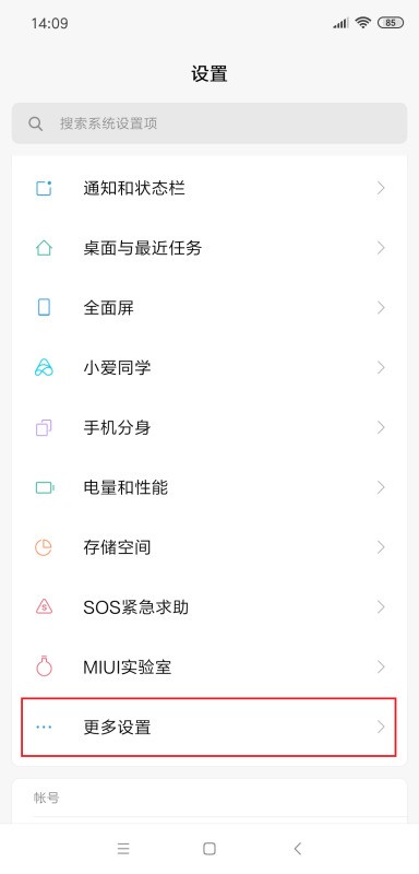 1.打開MIUI系統(tǒng)設(shè)置應(yīng)用界面,點(diǎn)擊“更多設(shè)置”選項(xiàng);