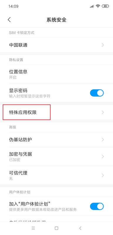 3.在系統(tǒng)安全設(shè)置頁面,點(diǎn)擊“特殊應(yīng)用權(quán)限”進(jìn)行設(shè)置;