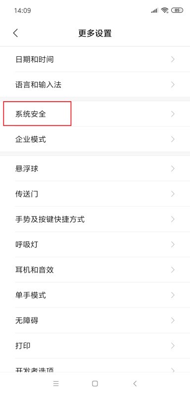 2.在“打開設(shè)置”頁面中,選擇“系統(tǒng)安全”設(shè)置項(xiàng);