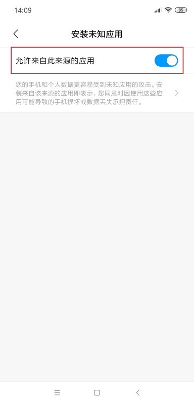 6.最后,在“打開”頁面中,單擊相應(yīng)的按鈕開關(guān)以啟用從此源安裝應(yīng)用程序。