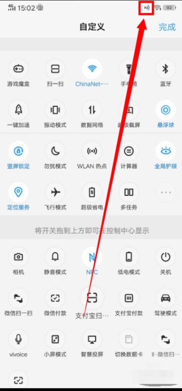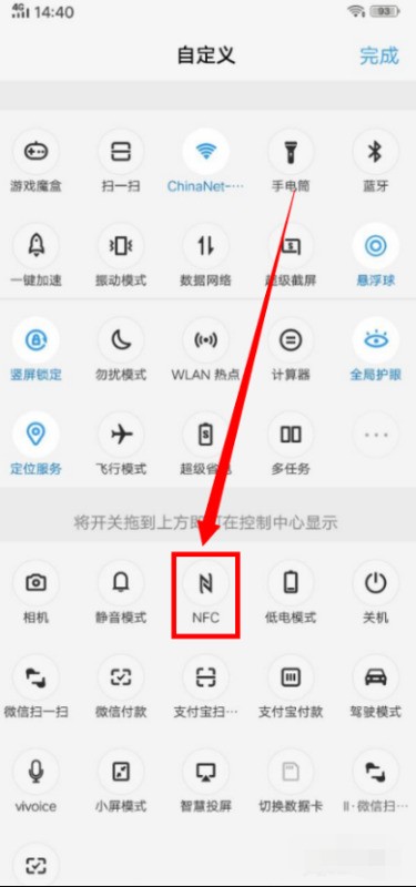 步驟4、接著進入自定義界面后找到并打開NFC,如圖所示: