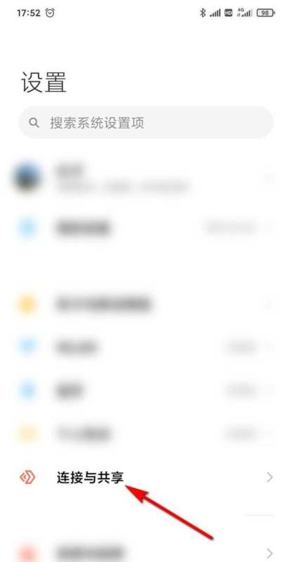 進入“連接與共享”:在設(shè)置菜單中,滑動找到“連接與共享”選項并點擊。