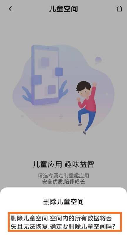 刪除兒童空間:在“兒童空間”界面右上角找到并點(diǎn)擊“刪除”圖標(biāo)。