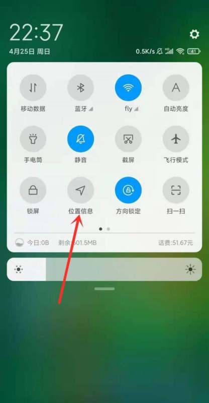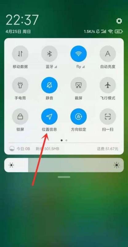 手機從屏幕的頂部往下滑,打開通知欄頁面。