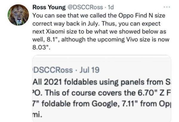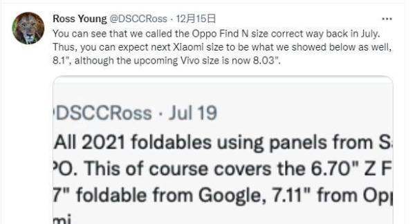 小米下一代折疊屏手機MIX FOLD 2屏幕尺寸為8.1英寸,可能于2022年上半年發布,內外屏均支持高刷新率。