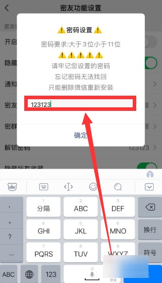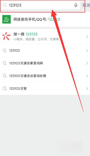 8、如果想再次看到被隱藏的好友,只要在微信首頁搜索框里輸入剛才設置的密碼即可。