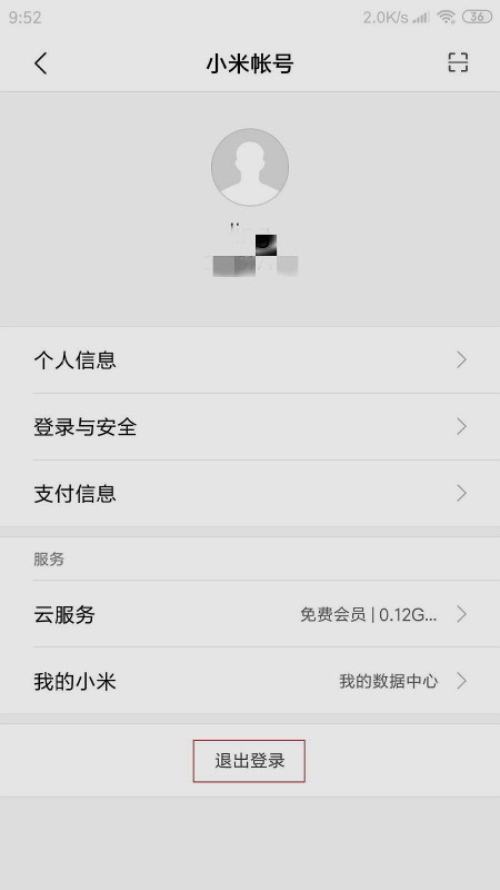 2、進入“小米賬號”頁面后,點擊下方的“退出登錄”。