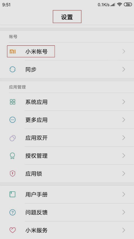 1、首先打開手機的“設置”按鈕點擊它,找到“小米賬號”點擊進入。