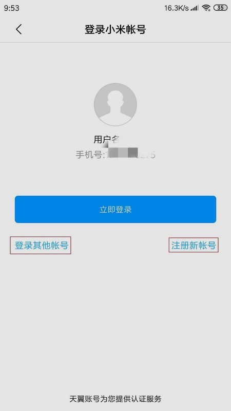 5、點擊“登錄其他賬號”或者“注冊新賬號”就可以更換其他小米賬號了。