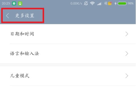 2、在設置界面,輕輕向下滑動,找到“更多設置“的選項,點擊進去下級菜單。
