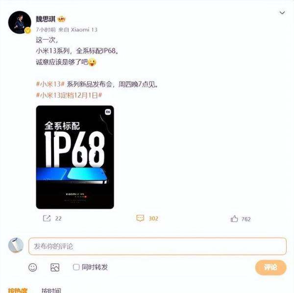 IP68級(jí)別的意義:IP68是國(guó)際電工委員會(huì)(IEC)制定的防塵防水等級(jí)標(biāo)準(zhǔn),其中“6”代表完全防塵,“8”代表在1.5米水深下連續(xù)浸泡30分鐘仍能正常使用。這一級(jí)別的防塵防水性能,使得小米13系列在日常使用中更加耐用,能夠應(yīng)對(duì)更多復(fù)雜環(huán)境。小米13系列其他亮點(diǎn)性能配置:小米13系列全系搭載高通第二代驍龍8移動(dòng)平臺(tái),性能強(qiáng)勁,能夠滿足用戶(hù)對(duì)于高性能手機(jī)的需求。同時(shí),最高支持120W有線閃充,大大縮短了充電時(shí)間,提升了用戶(hù)的使用體驗(yàn)。影像系統(tǒng):小米在13 Pro上使用了索尼1英寸大底主攝,型號(hào)為索尼IMX989。這枚傳感器此前已在小米12S Ultra上使用,并獲得了廣泛好評(píng)。與iPhone 13 Pro Max相比,索尼IMX989的感光面積提升72%,感光能力提升76%,同時(shí)拍照速度提升32.5%,啟動(dòng)速度提升11%,為用戶(hù)帶來(lái)了更加出色的拍照體驗(yàn)。小米在歐洲市場(chǎng)的表現(xiàn)市場(chǎng)份額:根據(jù)市場(chǎng)調(diào)研機(jī)構(gòu)Counterpoint的數(shù)據(jù)統(tǒng)計(jì)報(bào)告,在2022年第三季度的歐洲智能手機(jī)市場(chǎng)上,三星以33%的份額位居第一,小米則以23%的份額位居第二。此前長(zhǎng)期占據(jù)第二名寶座的蘋(píng)果公司,這次只有21%的份額,屈居小米之下。這也是小米首次在歐洲市場(chǎng)銷(xiāo)量占比上超越蘋(píng)果手機(jī)。