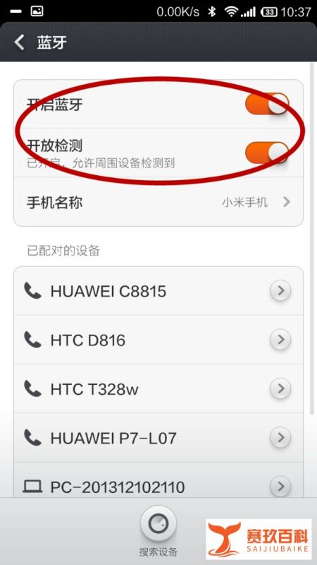 打開設備藍牙功能,搜索并找到分享網(wǎng)絡手機的藍牙名稱(如“小米手機”)。