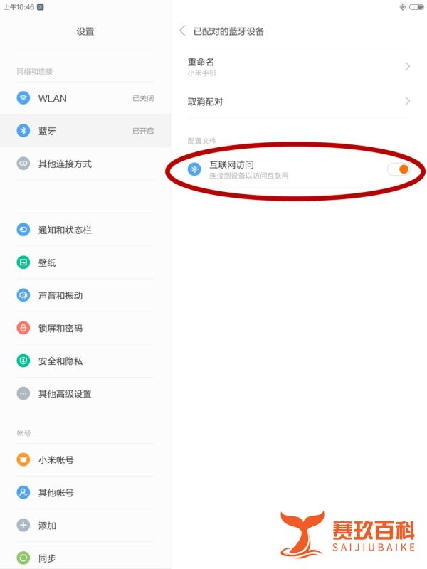 點擊該藍牙設備,開啟“互聯(lián)網(wǎng)訪問”權限。