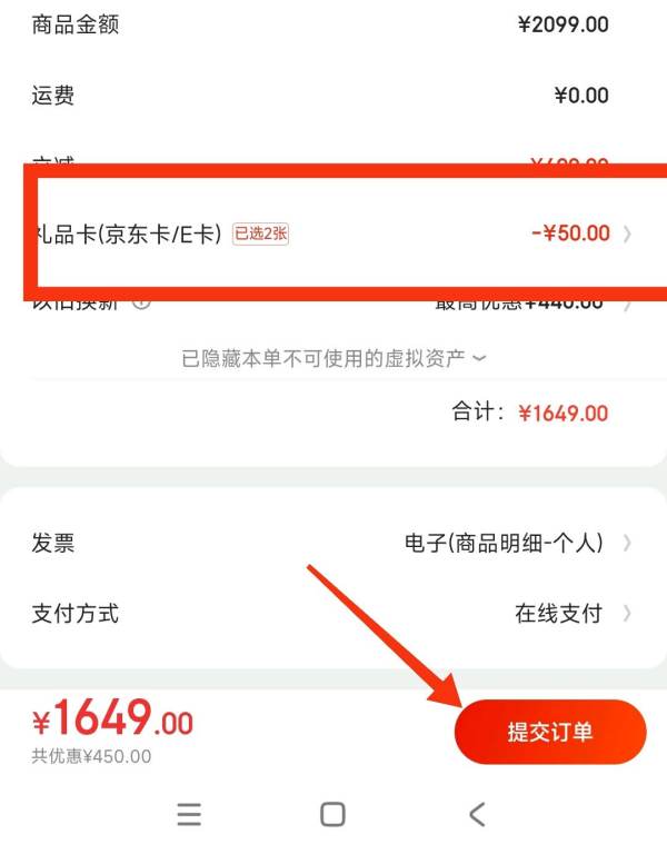 12.然后就可以看到京東卡的使用,再然后點擊提交即可。