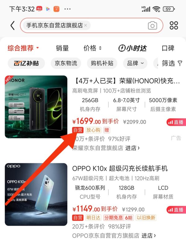 6.然后我們返回到首頁。在搜索欄里面輸入自己小樣的物品,并且添上自營店三個字,京東卡只能在自營店使用。