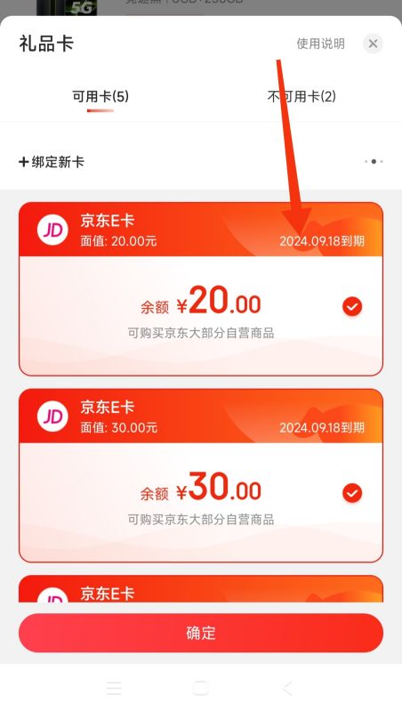 4.輸入京東卡卡密,或者拍照實體卡,通過掃描自己輸入。然后點擊綁定