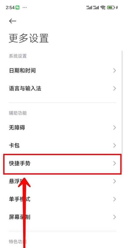 選擇快捷手勢:在更多設置頁面中,找到并點擊【快捷手勢】選項,進入手勢功能配置界面。