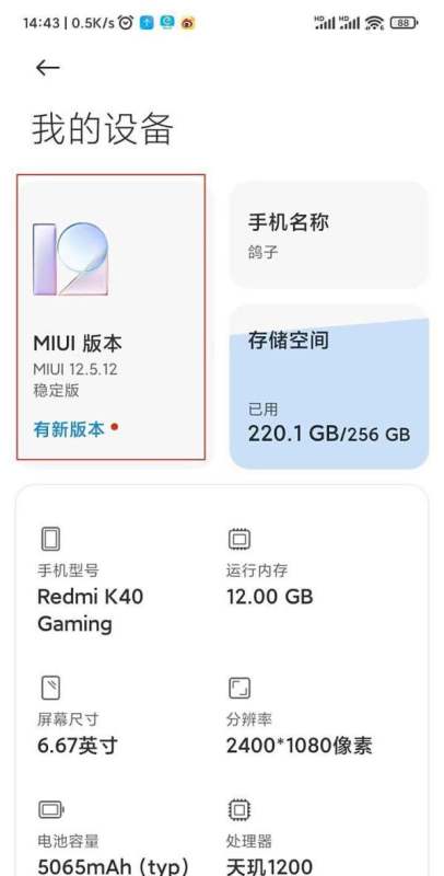 步驟三:查看MIUI系統版本在“我的設備”頁面中,點擊“MIUI版本”選項,系統會彈出當前版本號信息。