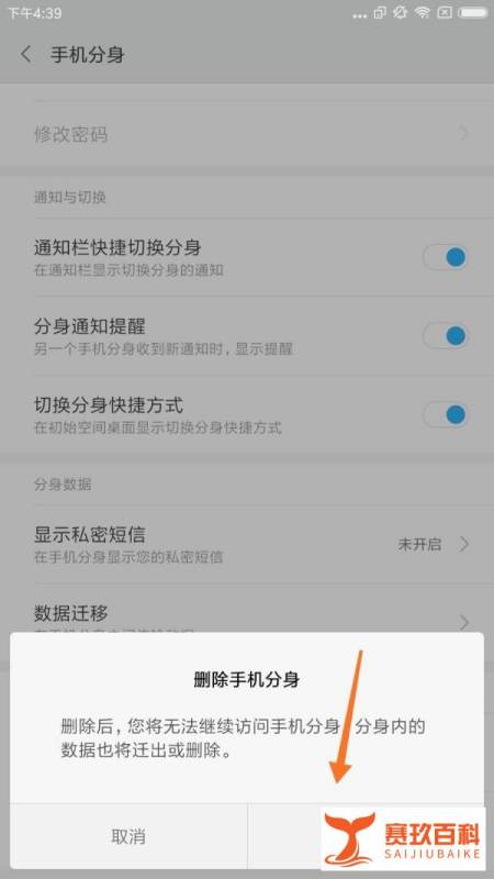 刪除手機分身在分身管理界面底部找到刪除手機分身按鈕并點擊。