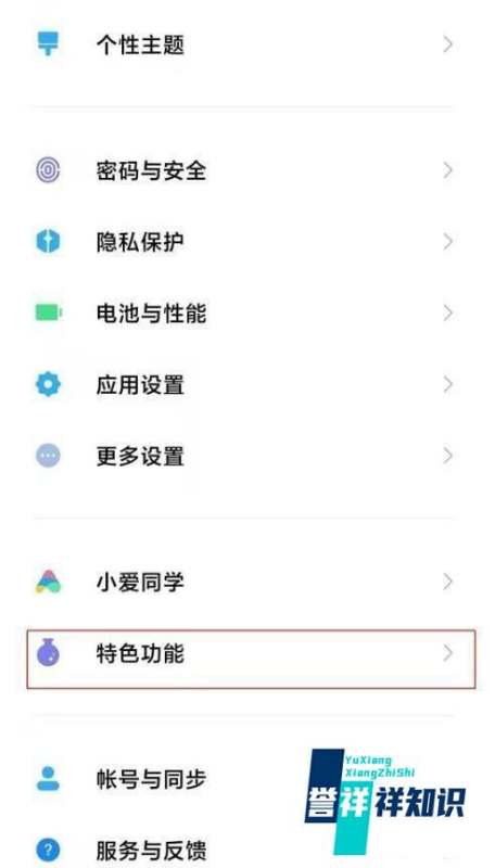 進入特色功能菜單在設置界面中找到特色功能選項并點擊進入。