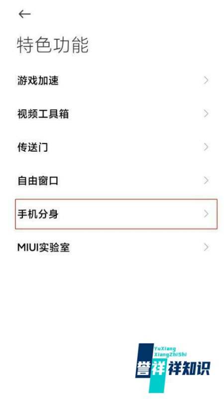 選擇手機分身管理在特色功能列表中點擊手機分身選項,進入分身管理界面。