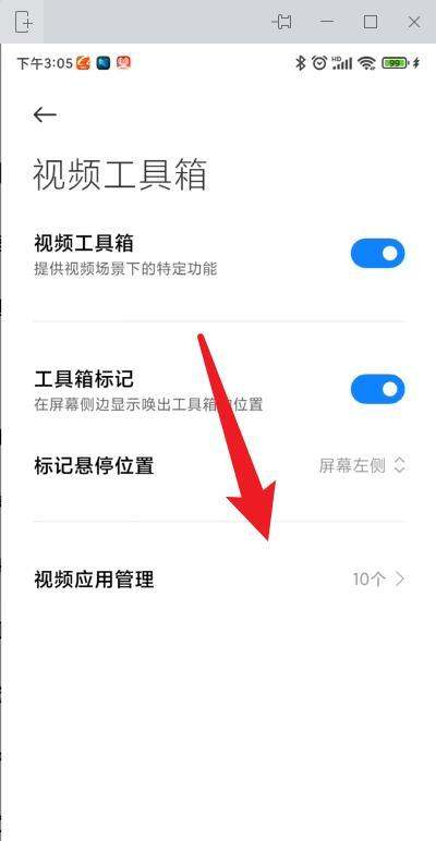 關閉視頻工具箱在視頻應用管理列表中,找到目標應用,關閉其對應的視頻工具箱開關即可完成設置。