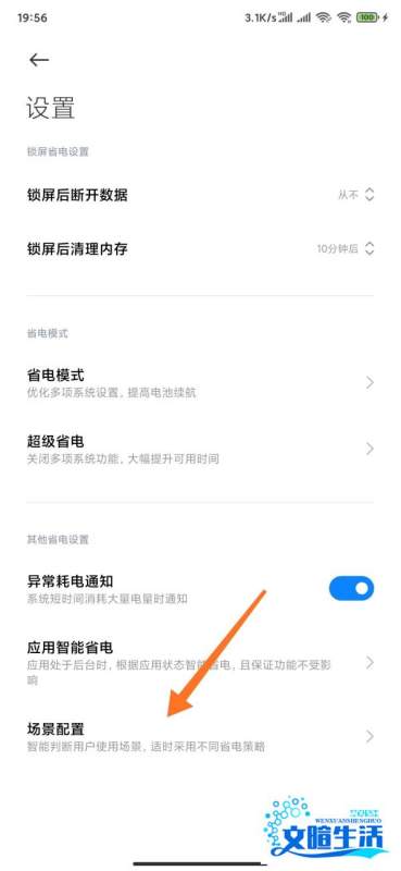進入場景配置:在“電量和性能”頁面底部找到場景配置選項,點擊進入設置頁面。