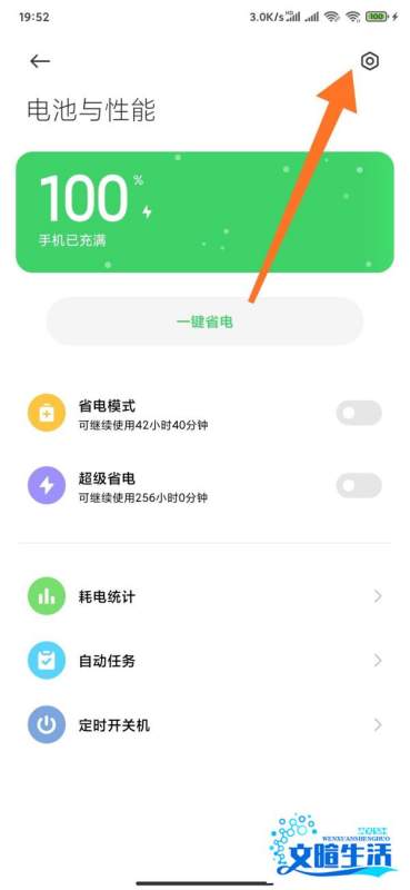 進入設置菜單在省電與電池頁面右上角,點擊設置圖標(通常為齒輪形狀)。